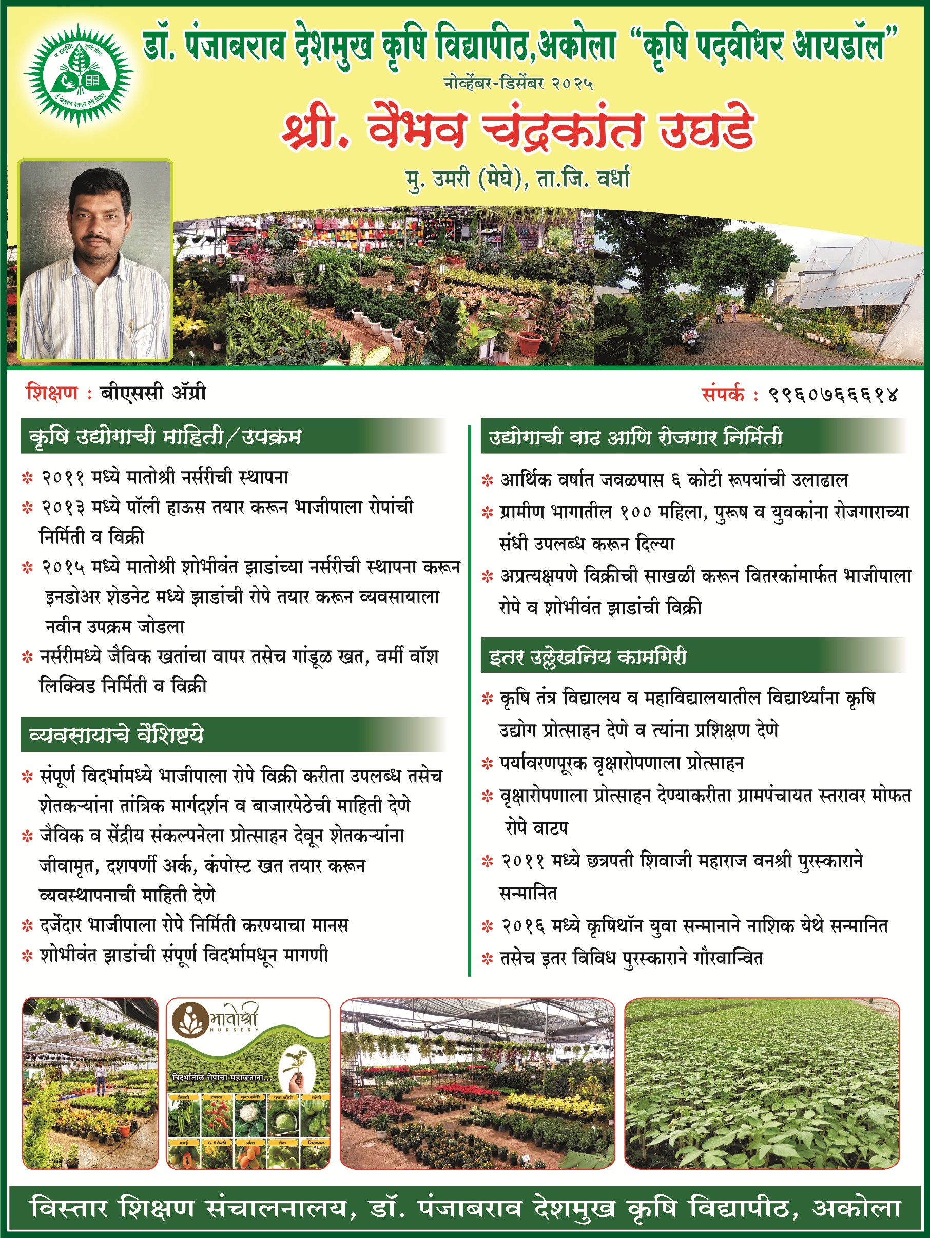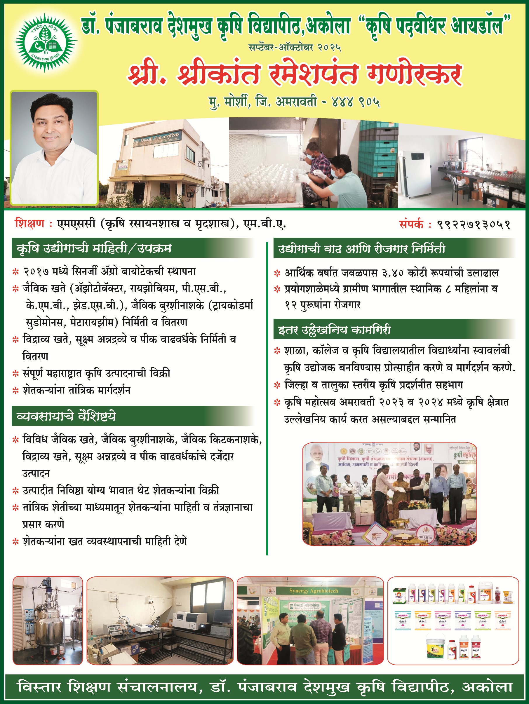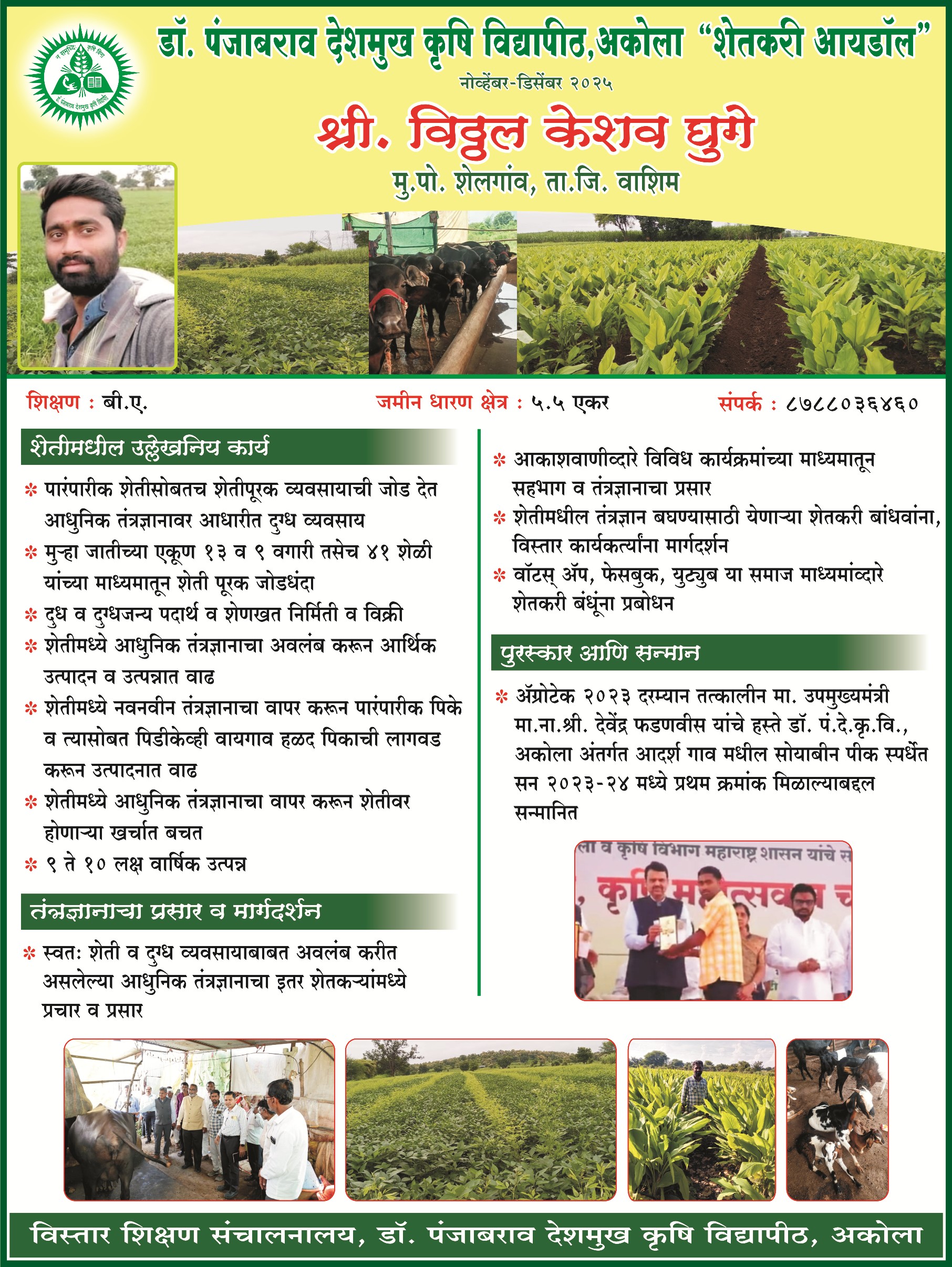 डॉ पंजाबराव देशमुख कृषि विद्यापीठ, अकोला अंतर्गत कृषि विज्ञान केंद्र, सेलसुरा येथे पि एम धन धान्य कृषि योजना कार्यक्रमाचे पुसा, नवी दिल्ली येथून थेट प्रक्षेपण दाखविण्यात आले. सदर कार्यक्रम वरीष्ठ शास्त्रज्ञ व प्रमुख डॉ जीवन कतोरे यांच्या अधिपत्याखाली आयोजित करण्यात आला. केंद्र सरकारने कृषी क्षेत्राला नवी दिशा देण्यासाठी दि ११ ऑक्टोबर २०२५ रोजी, भारतरत्न लोकनायक जयप्रकाश नारायण यांच्या जयंतीदिनी, दोन महत्त्वाकांक्षी योजनांचा शुभारंभ केला. पंतप्रधान श्री नरेंद्र मोदी यांच्या हस्ते नवी दिल्ली येथील भारतीय कृषी संशोधन संस्था, पुसा कॅम्पस येथे आयोजित विशेष ‘कृषी कार्यक्रमात’ ‘प्रधानमंत्री धन-धान्य कृषी योजना’ (PMDDKY) आणि ‘डाळींमध्ये आत्मनिर्भरता अभियान’ यांचा औपचारिक प्रारंभ झाला. या कार्यक्रमादरम्यान, पंतप्रधानांनी देशातील विविध भागांतील निवडक शेतकरी आणि शेतकरी उत्पादक संस्थांच्या प्रतिनिधींशी व्हिडिओ कॉन्फरन्सिंगद्वारे थेट संवाद साधला. पंतप्रधानांनी या दोन्ही योजनांना शेतकऱ्यांच्या जीवनात आणि देशाच्या कृषी क्षेत्रात परिवर्तन घडवून आणणारे ‘ऐतिहासिक पाऊल’ म्हणून संबोधले. या योजनांमुळे देशातील कोटींवर शेतकऱ्यांचे भविष्य बदलेल आणि त्यांना नवी संधी मिळेल, असा विश्वास त्यांनी व्यक्त केला.