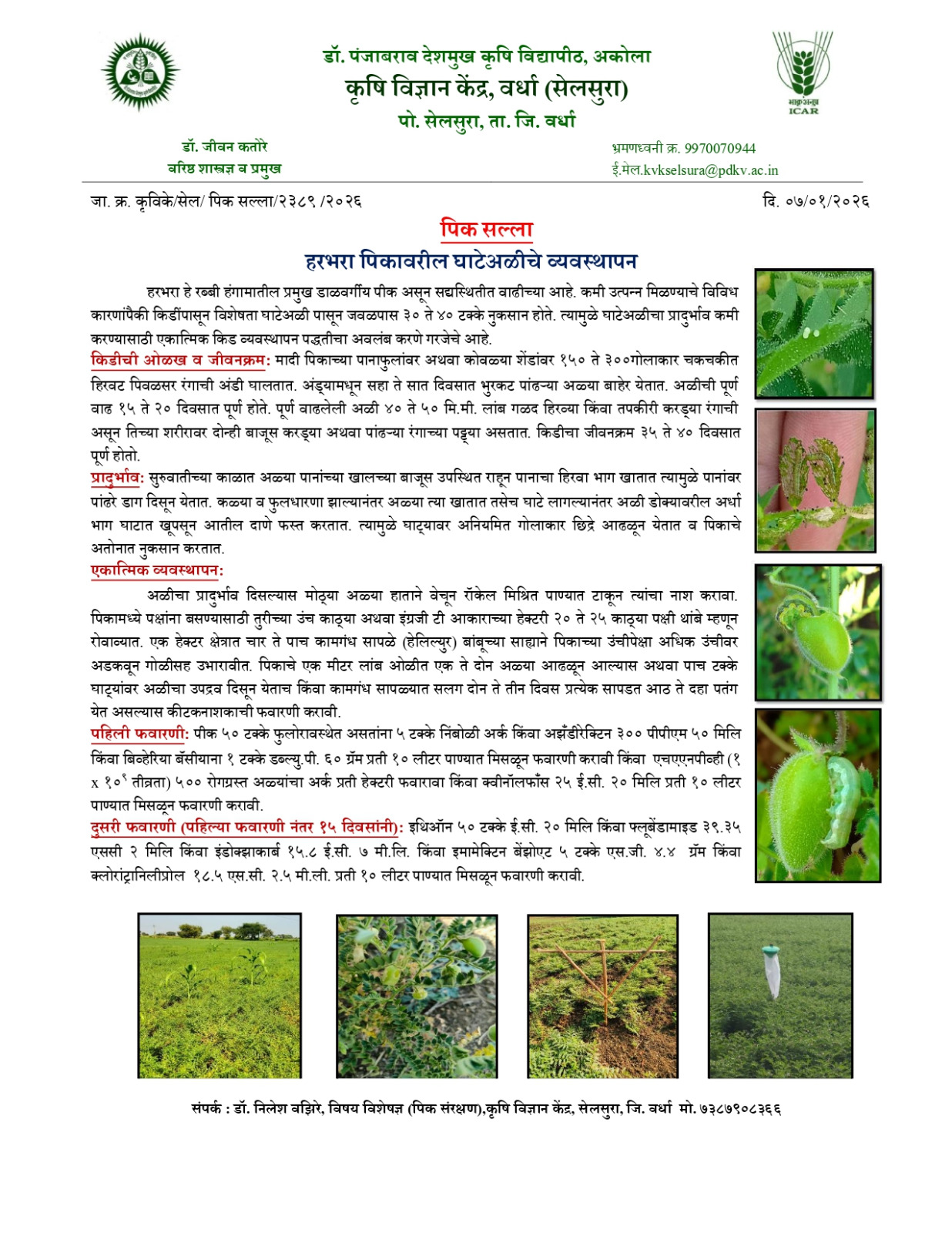 हरभरपिकातील घाटे अळीचे व्यवस्थापण