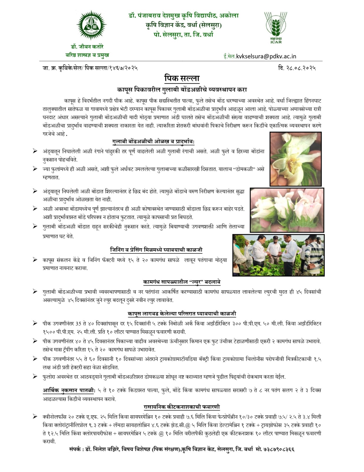 कपाशी वरील गुलाबीबोड अळीचे व्यवस्थापण